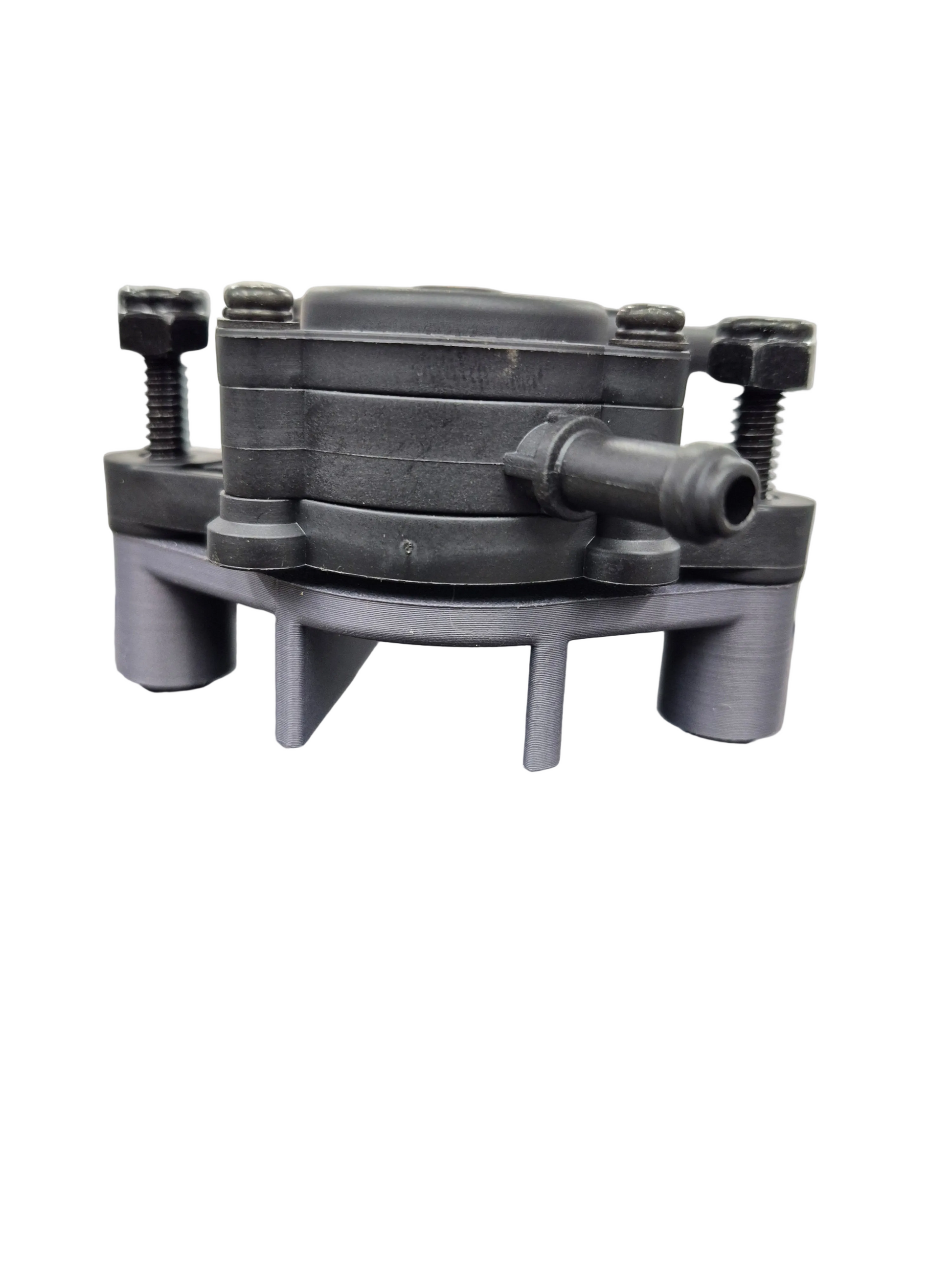 Fuel Pump Riser to keep the fuel pump cool allowing air to circulate under it. Includes black bolts with lock nuts. These are made of a carbon infused 3d filament.